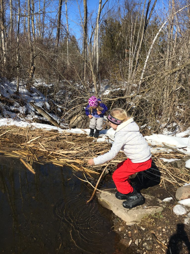 With well groomed trails, this area is great for a variety of winter activities including cross country skiing, snow shoeing, and hiking. The wide smooth trails are perfect for hiking with little ones in tow (bring the sled to pull them along). The pond and creeks are beaming with wildlife – and if you don’t see the animals and birds, there is lots of evidence of their activity in the snow.
