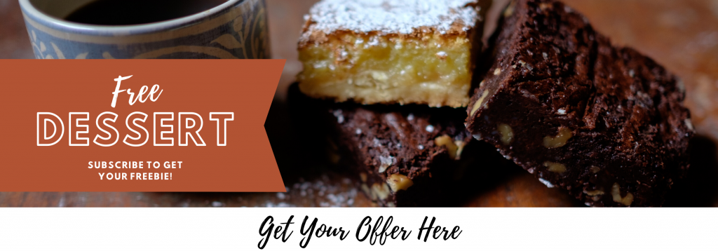 Receive one free individual-sized dessert with the purchase of a breakfast or lunch (sandwiches, quiche, or our weekend all-day breakfast).