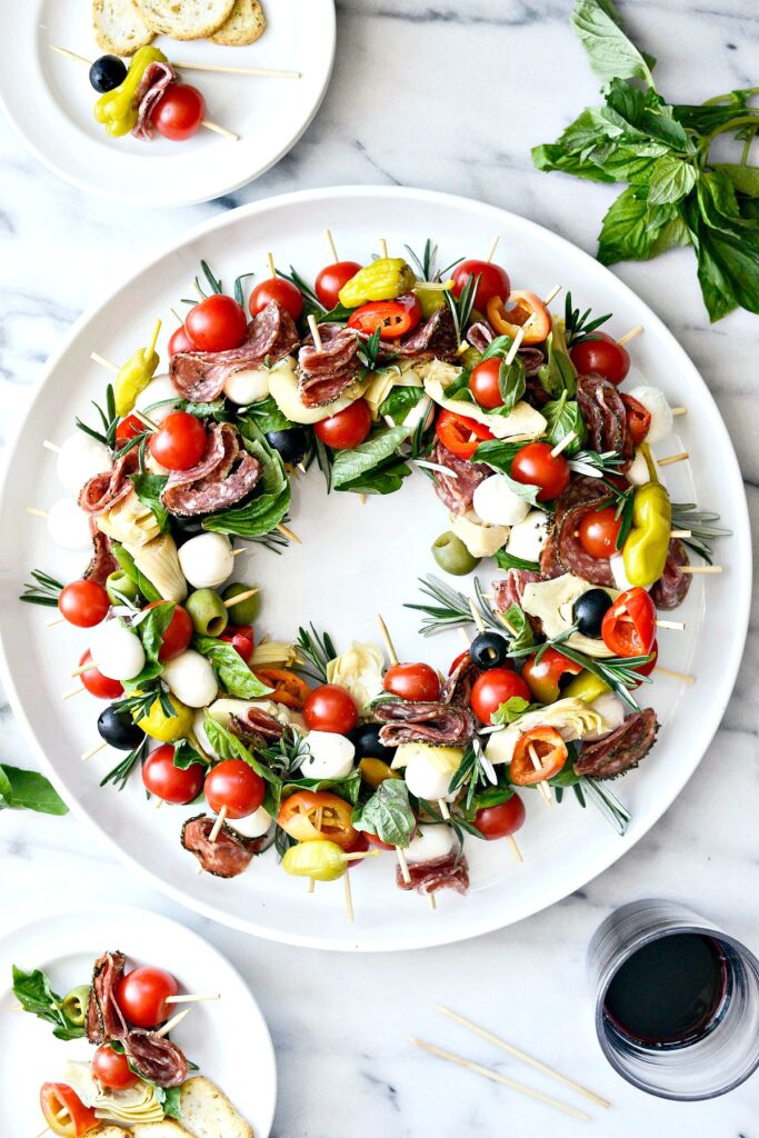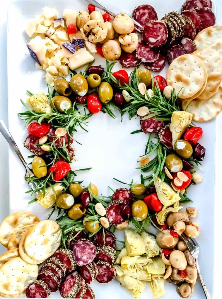 Don’t restrict yourself to a typical charcuterie spread. Be creative and try something new, like an antipasto Christmas Charcuterie Wreath like this one by Foodie Crush.